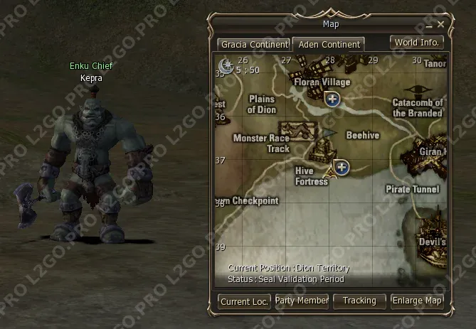 Найдите Martien в Giran Castle Town. Он расскажет вам о втором монстре — Gorr (36 уровень), который терроризирует окрестности Dion.