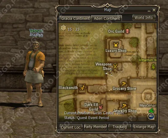 Отправляйтесь в Giran Castle Town и найдите Veteran Ascalon в гильдии воинов. Ascalon — легендарный воин, который проверит, достойны ли вы звания Чемпиона.