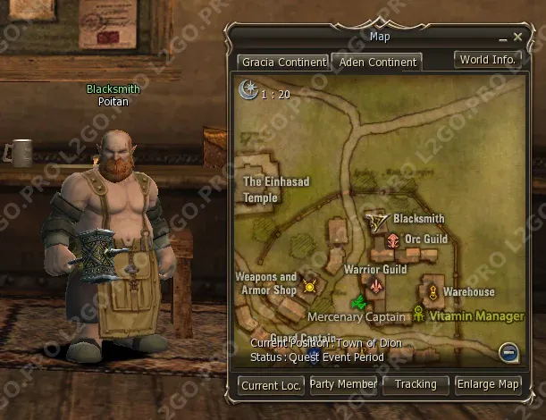 Отправляйтесь к Blacksmith Poitan в Town of Dion за
