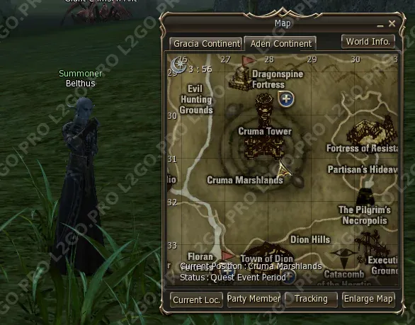 3. Summoner Belthus — около Cruma Tower (Dion). Получите