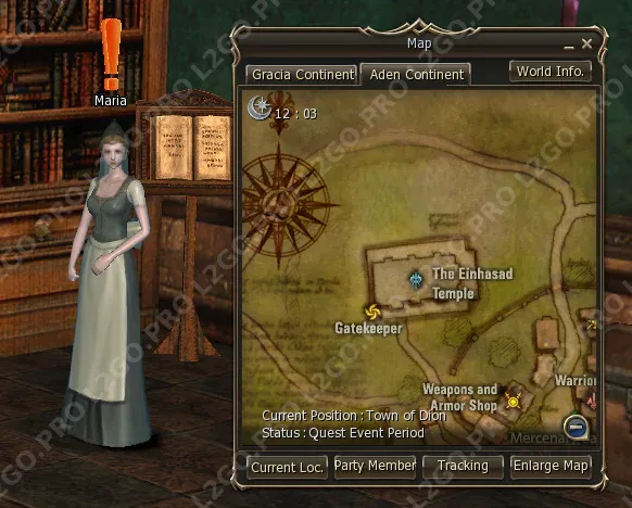 Ваша задача — найти Maria, которая живёт в Town of Dion. Maria — важный персонаж в этом квесте, вам предстоит часто возвращаться к ней.