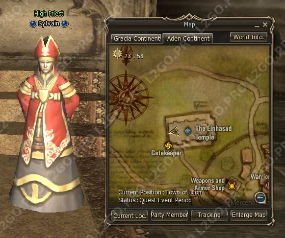 Первым делом вам нужно отправиться к High Priest Sylvain в Town of Dion — он находится в храме.