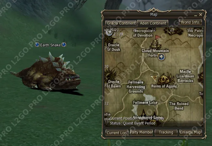 Теперь нужно получить 4 элементальных амулета, посетив духов стихий. Идите в Ruins of Agony (около Town of Gludio) к Earth Snake. Получите