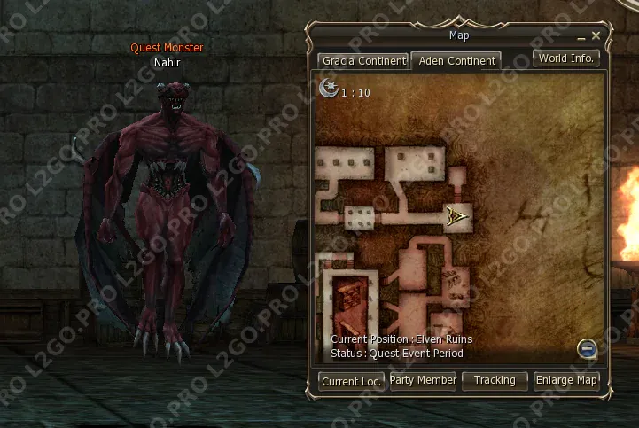 Отправляйтесь в Elven Ruins (Эльфийские Руины) к югу от Talking Island Village. Здесь вам нужно найти и уничтожить Nahir — он появляется как квестовый монстр.