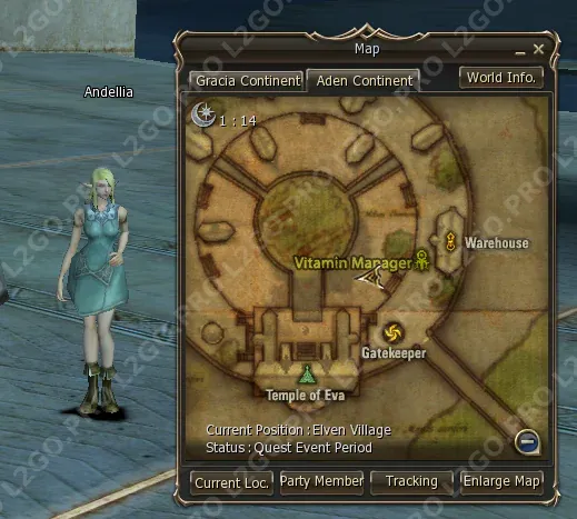 Телепортируйтесь в Elven Village (Эльфийскую Деревню). Найдите Andellia — она стоит возле храма.