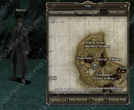 Телепортируйтесь в Giran Castle Town. Найдите Priest Primos в Храме (Temple). Он отправит вас на Говорящий Остров.
