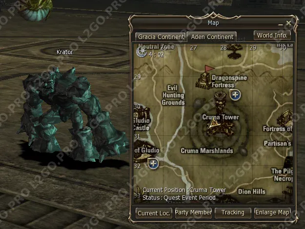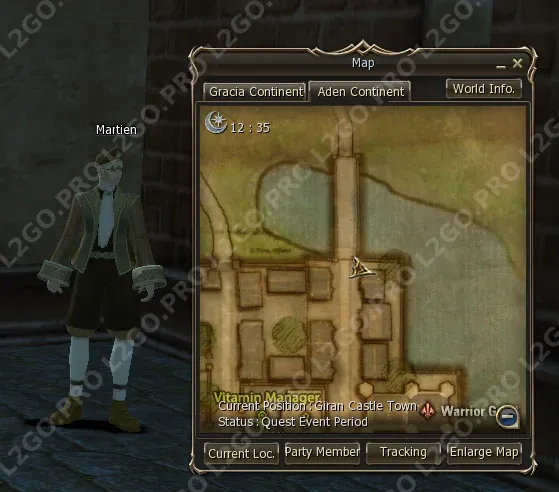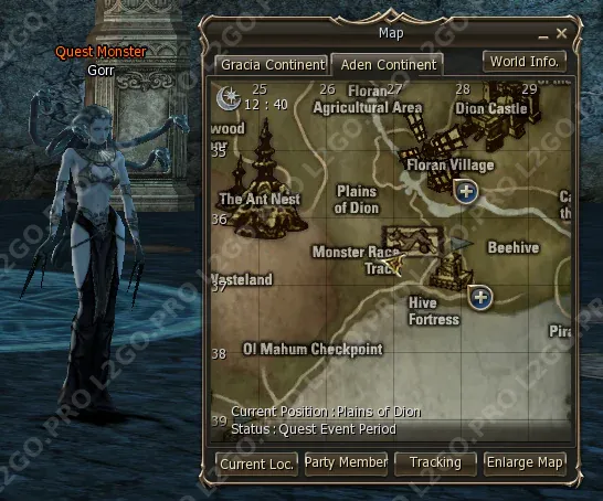Найдите Martien в Giran Castle Town. Он расскажет вам о втором монстре — Gorr (36 уровень), который терроризирует окрестности Dion.