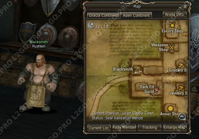 Собрав все предметы, вернитесь к Pushkin в Giran. Он создаст