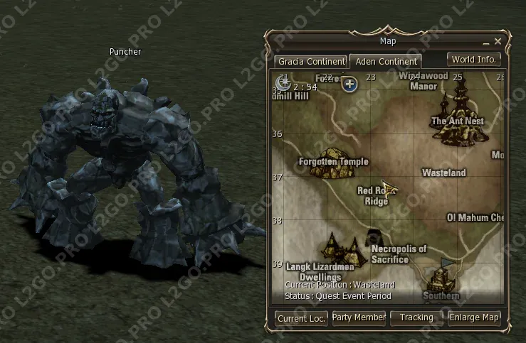 Отправляйтесь в Wasteland около Gludio. Убивайте монстров Puncher и соберите 10x