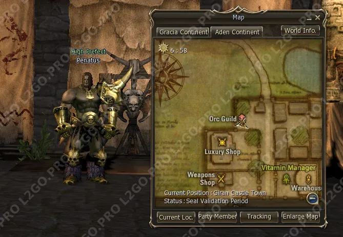 Отправляйтесь в Giran Castle Town к Prefect Penatus в гильдии орков (Orc Guild).