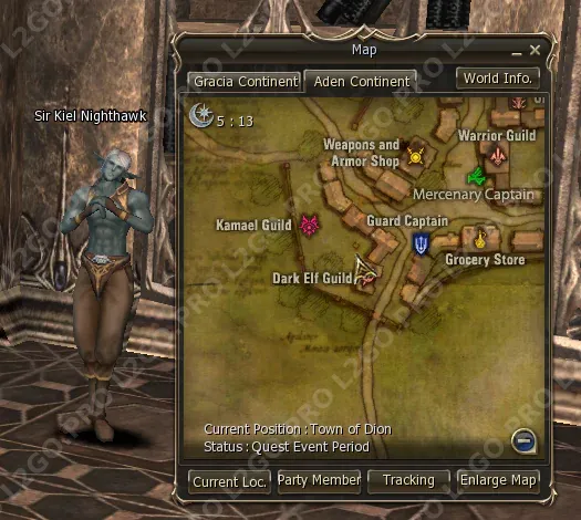 Летите в Town of Dion. Найдите Sir Kiel Nighthawk (юг города, возле Гильдии Темных Эльфов).