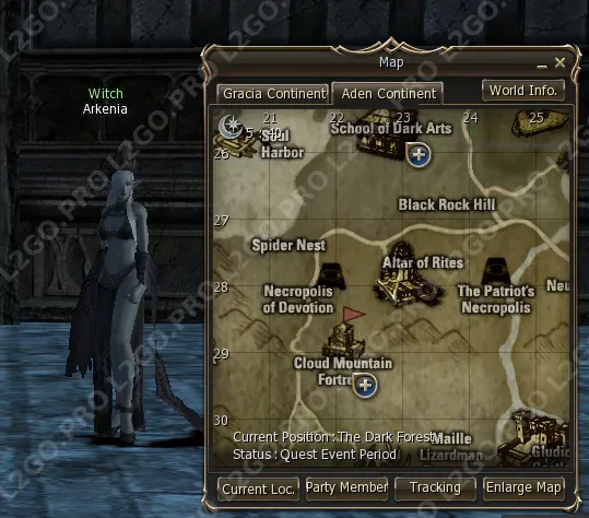 Отправляйтесь к Arkenia в Altar of Rites (Dark Elf территория).