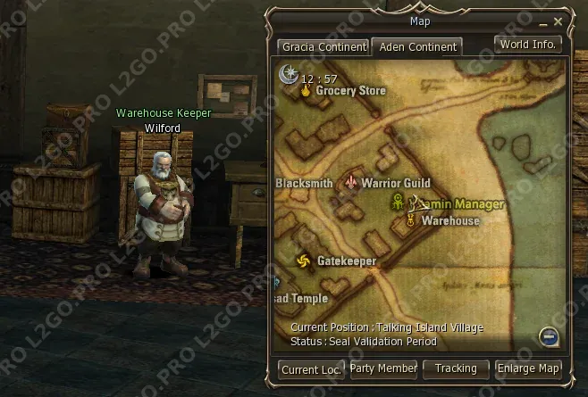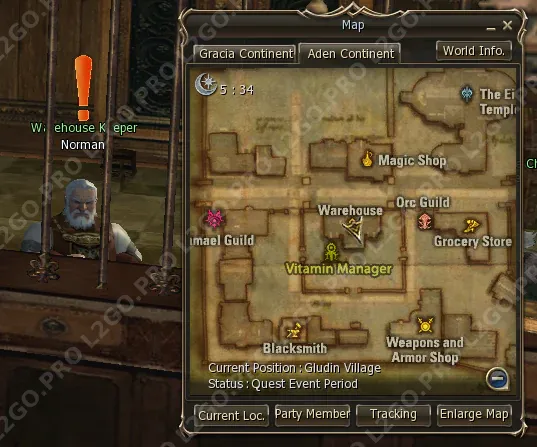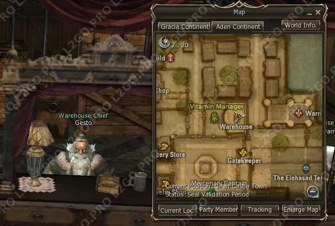 Отправляйтесь в Giran Castle Town к Warehouse Chief Gesto на складе (Warehouse).