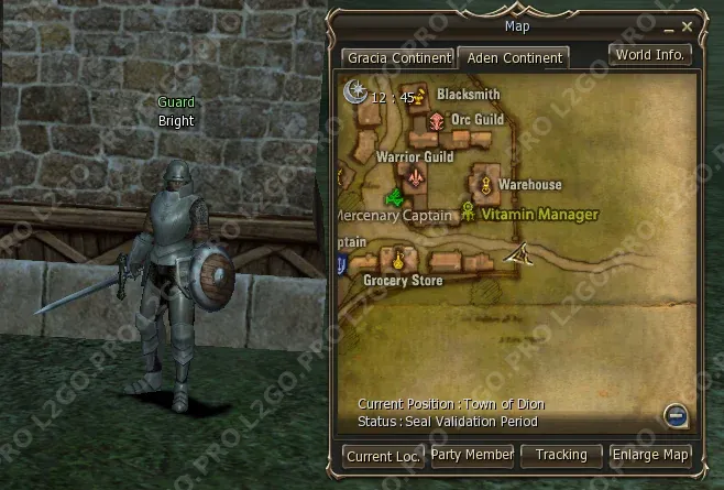 Parman направит вас к Guard Bright в Town of Dion.