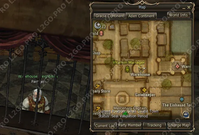 Вернитесь к Warehouse Keeper Parman в Giran Castle Town с