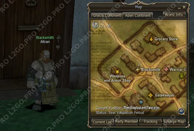 С рекомендацией Valkon отправляйтесь в Talking Island Village к Blacksmith Altran. Он находится в кузнице деревни.