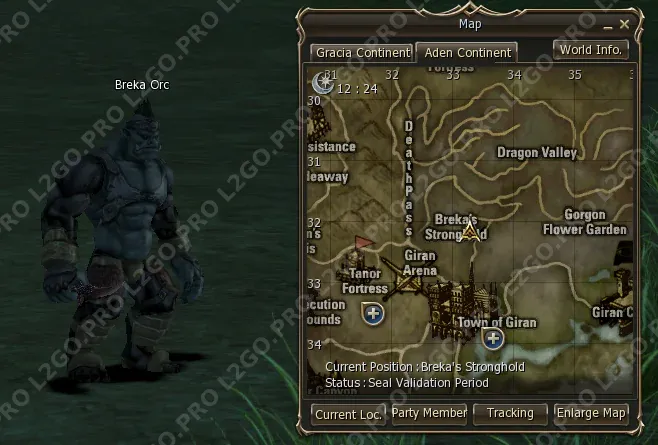 📍 Локация: Breka's Stronghold — это лагерь орков на холмах к северу от Giran.