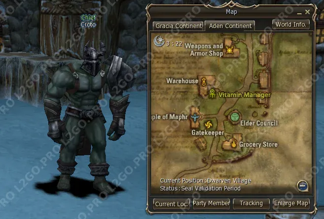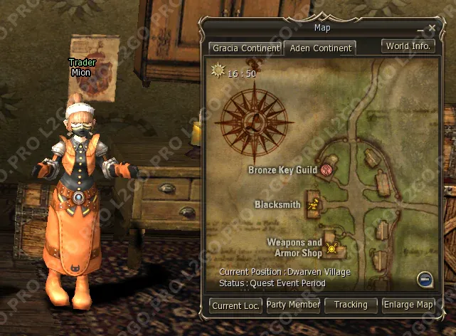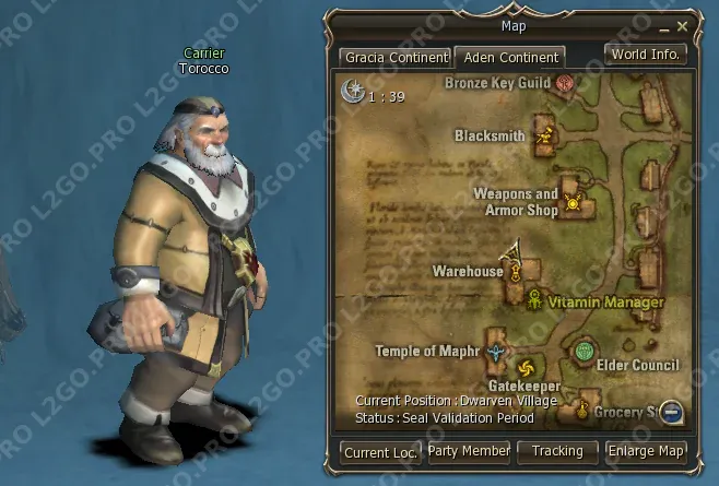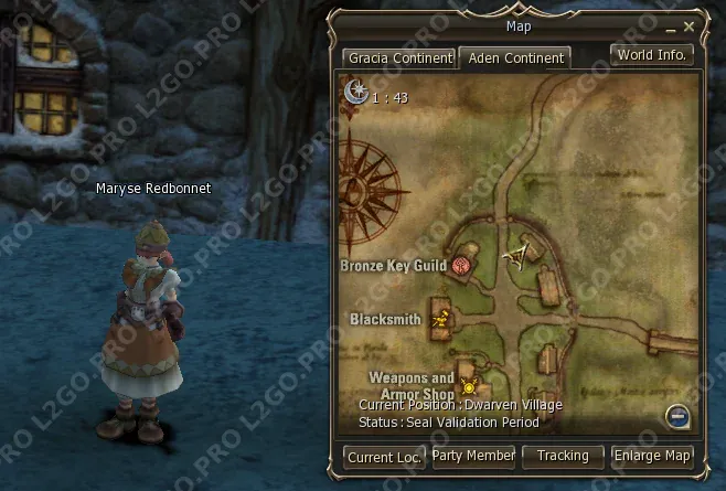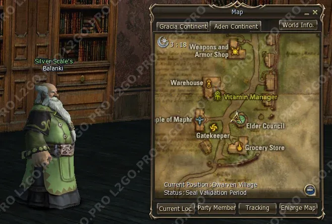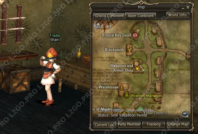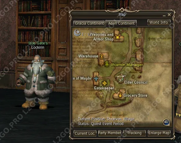 Отправляйтесь в Giran Castle Town и найдите Warehouse Keeper Parman на складе. Он — главный торговец гильдии гномов и расскажет об истории процветания дварфов.