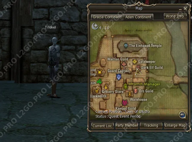 1.В Town of Gludio найдите Triskel. Он нап...2.Отнесите письмо к Witch Arkenia у Altar ...3.Поговорите с Guard Leikan в Gludin Villa...4.Охотьтесь на Moonstone Beast (51 ур.) к ...5.Вернитесь к Leikan. Он расскажет о воре ...6.Убейте Calpico (13 ур.) у School of Dark...7.Верните Слёзы к Arkenia. Получите Arken...8.Вернитесь к Triskel. Получите Iron Hear...9.На 20 уровне поговорите с Grandmaster To...