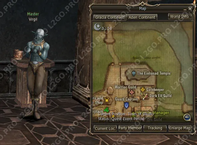 Отправляйтесь в Town of Gludio и поговорите с Master Virgil. Он расскажет о пути Тёмного Рыцаря. Получите