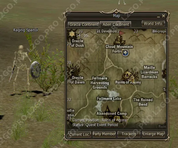 Телепортируйтесь в Town of Gludio (Город Глудио), а затем отправляйтесь в Ruins of Agony (Руины Страданий). Охотьтесь на Spartoi или Skeleton Tracker, используя квестовое оружие от Нети.