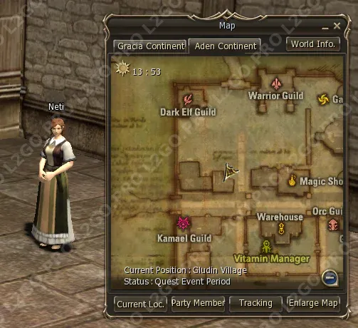 Теперь вам нужно найти Neti в центральной части Глудина. Передайте ей письмо от Безика. Нети выдаст вам специальное квестовое оружие — Neti's Bow (Лук Нети) и Neti's Dagger (Кинжал Нети).