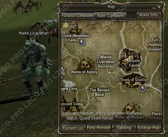 Телепортируйтесь к Maille Lizardman Barracks. Убивайте Maille Lizardmen, пока не появится Ol Mahum Officer Tak (ур. 20). Убейте его и получите