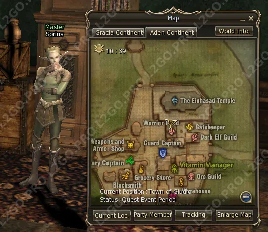 Отправляйтесь в Town of Gludio и найдите Master Sorius (Сориус) в Гильдии Воинов. Поговорите с ним о том, что хотите стать Elven Knight. Он отправит вас в Ruins of Agony (Руины Страданий) убивать нежить.