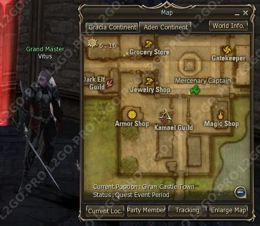 Найдите Grand Master Vitus в Kamael Village. Возьмите квест.