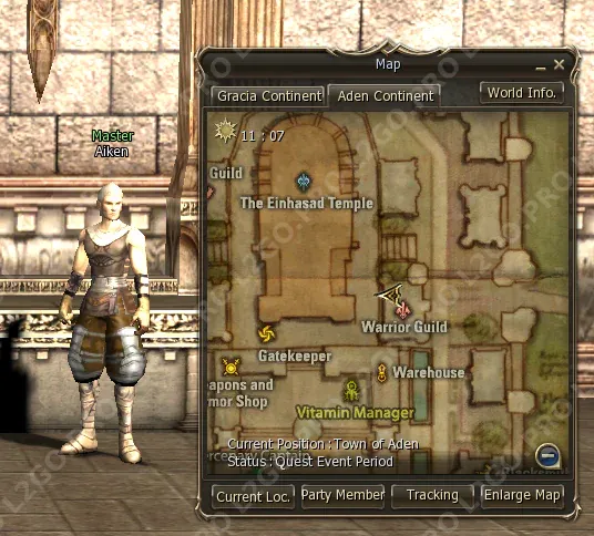 Квест начинается в Town of Aden. Найдите Master Aiken.