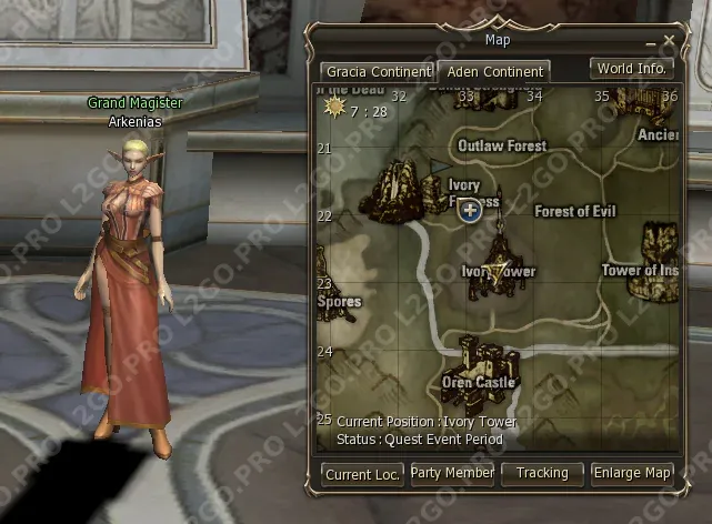 Квест начинается у Grand Magister Arkenias в Ivory Tower (Башня Слоновой Кости). Для прохождения требуется 76+ уровень.