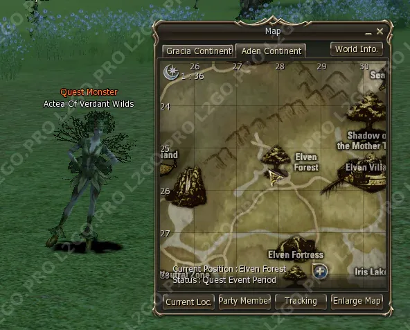 Отправляйтесь в Elven Forest и охотьтесь на Dryad Elder (14 ур.). При убийстве появится квестовый моб Actea Of Verdant Wilds — убейте её и получите