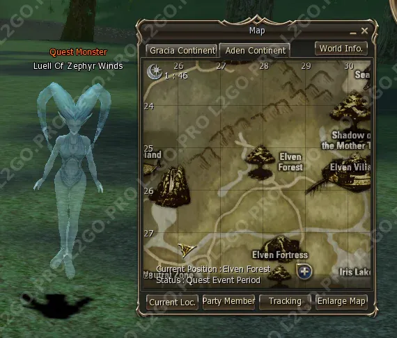 Теперь охотьтесь на Lirein Elder (19 ур.) в Elven Forest. При убийстве появится Luell Of Zephyr Winds — убейте её и получите