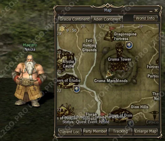 Отправляйтесь в Town of Gludio и найдите Trader Borys. Покажите ему странную карту. Он узнает её — это часть карты к древнему сокровищу! Borys попросит достать редкое вино в обмен на информацию. Получите