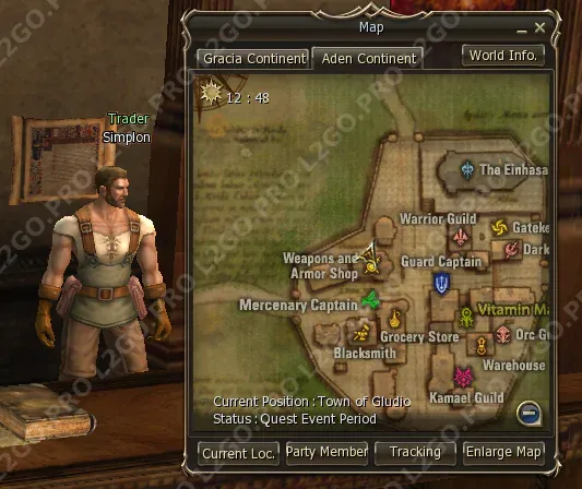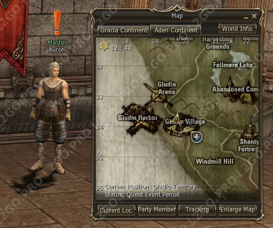 Чтобы начать квест летим в Gludin Village и бежим в Warior Guild. Нам нужно поговорить с Auron